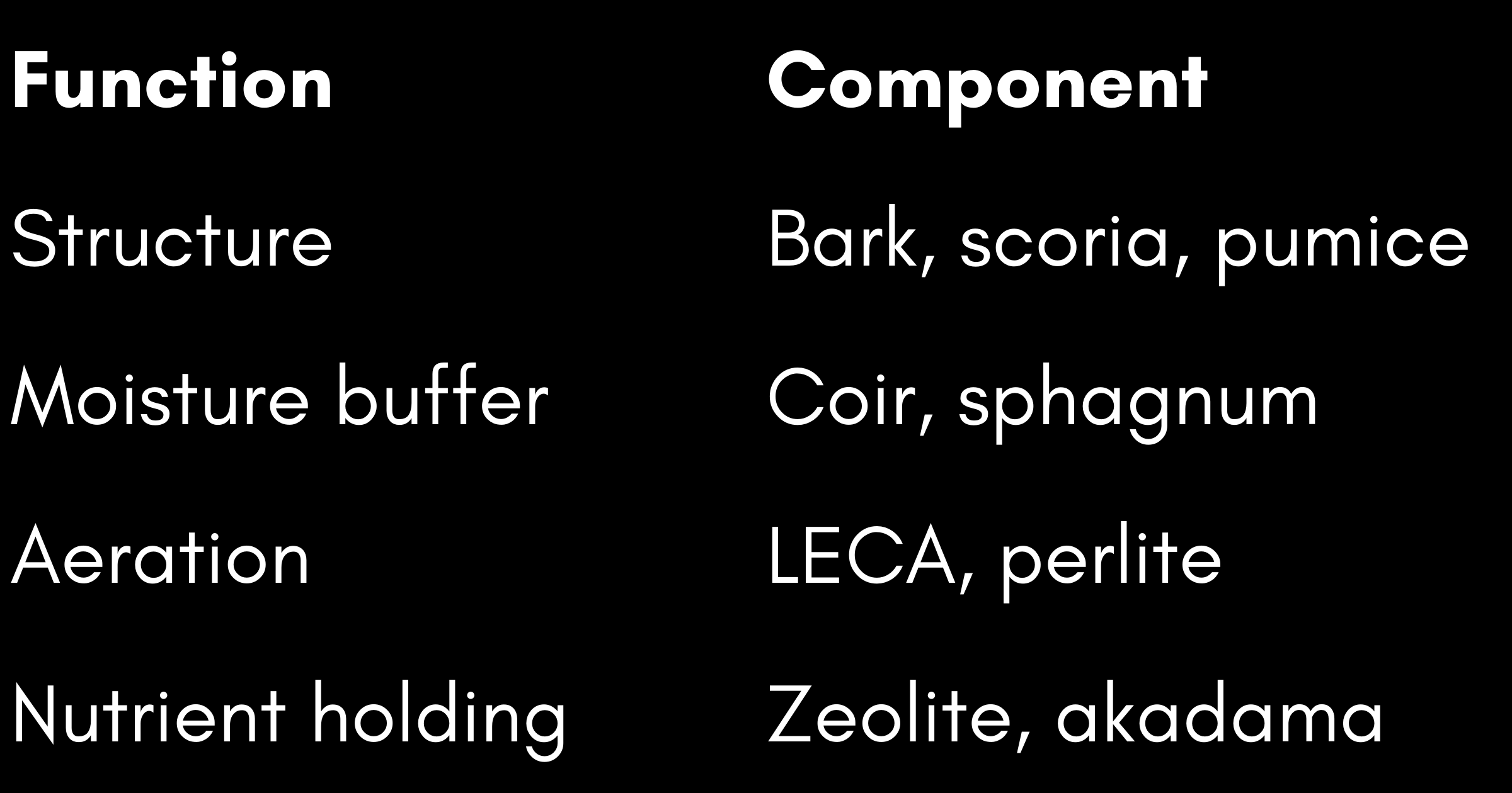 Add structure: Orchid bark; Pumice; Perlite; LECA