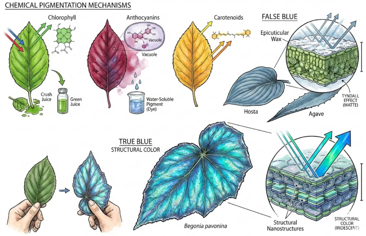 Blue Foliage Plants: The Photonic Engineering of Iridescent Leaves