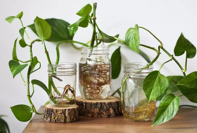 This article focuses primarily on the second category: long-term growth in plain water, such as a cutting of Epipremnum aureum trailing from a glass jar.