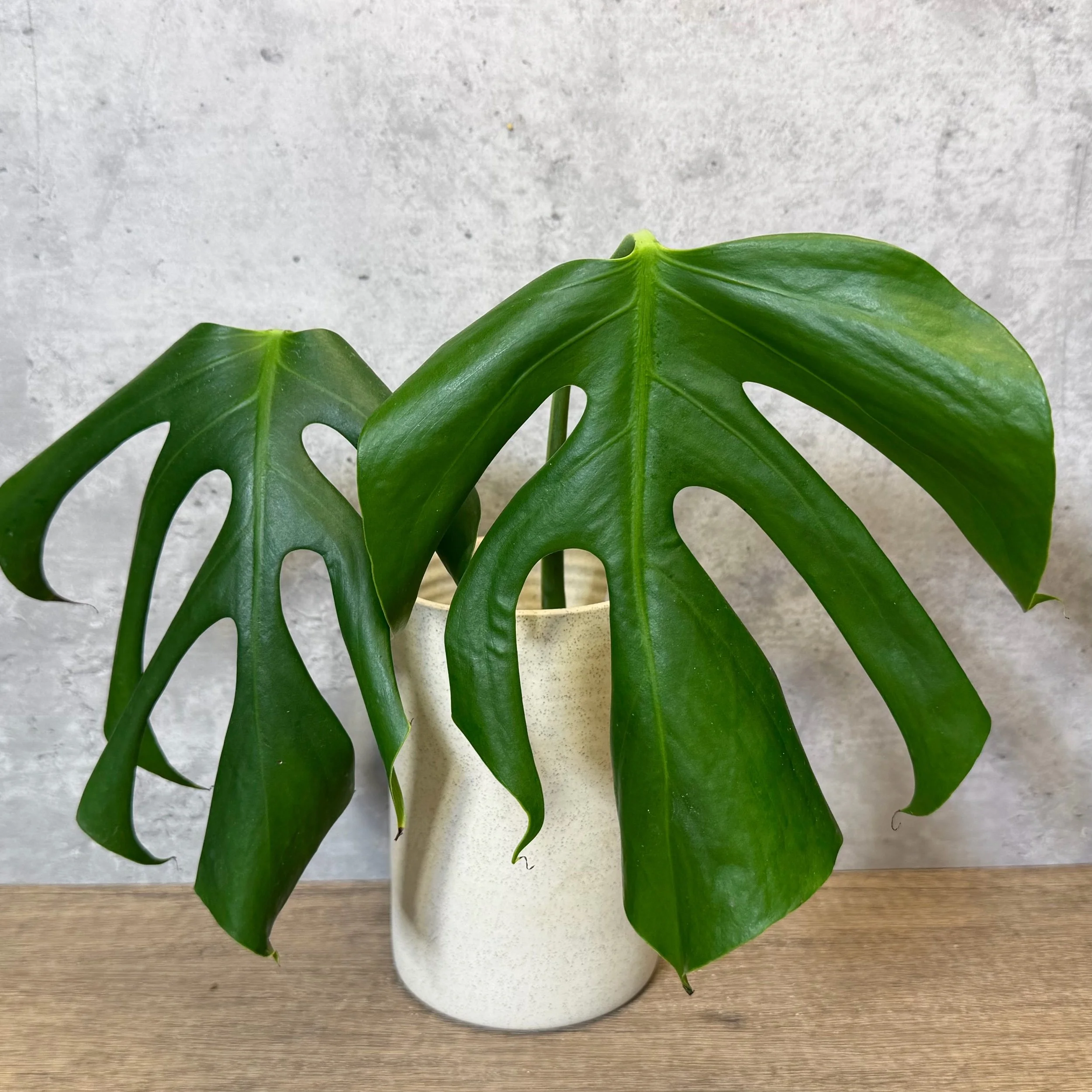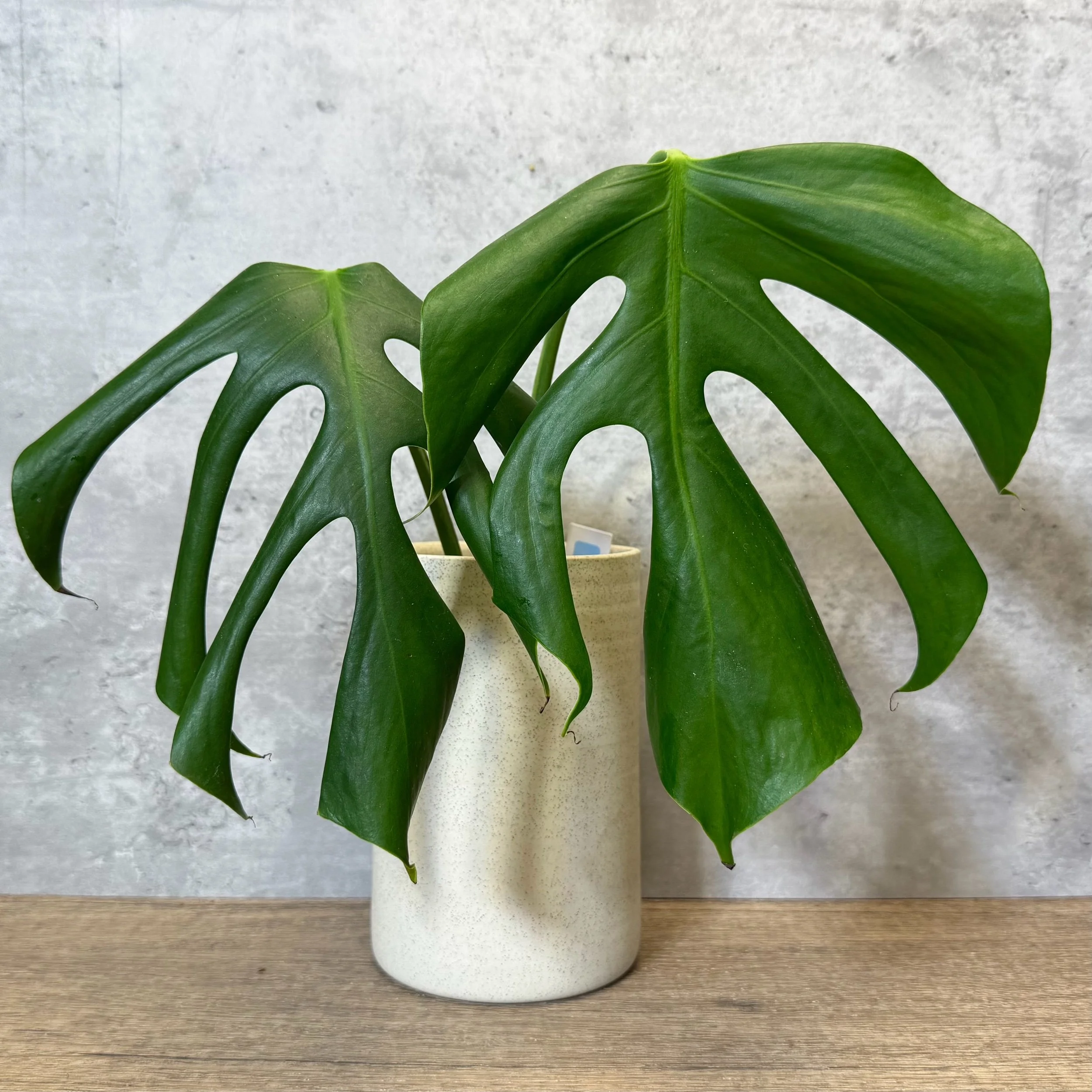 A striking and lesser-seen Monstera species known for its elongated, elegant foliage and refined fenestration. As it matures and climbs, the leaves develop graceful splits that enhance its architectural presence without overwhelming its clean form.