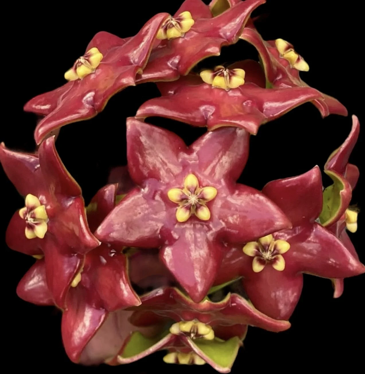 Another species from the eriostemma section of the genus, and one of the best in our opinion! This is a highly sought after species which is understandable. Presenting thick, curled foliage that has a rubbery/waxy texture. This species is a robust grower with gorgeous blooms. Boasting thick, waxy burgundy star shaped corollas adorned with a corona of similar colour.