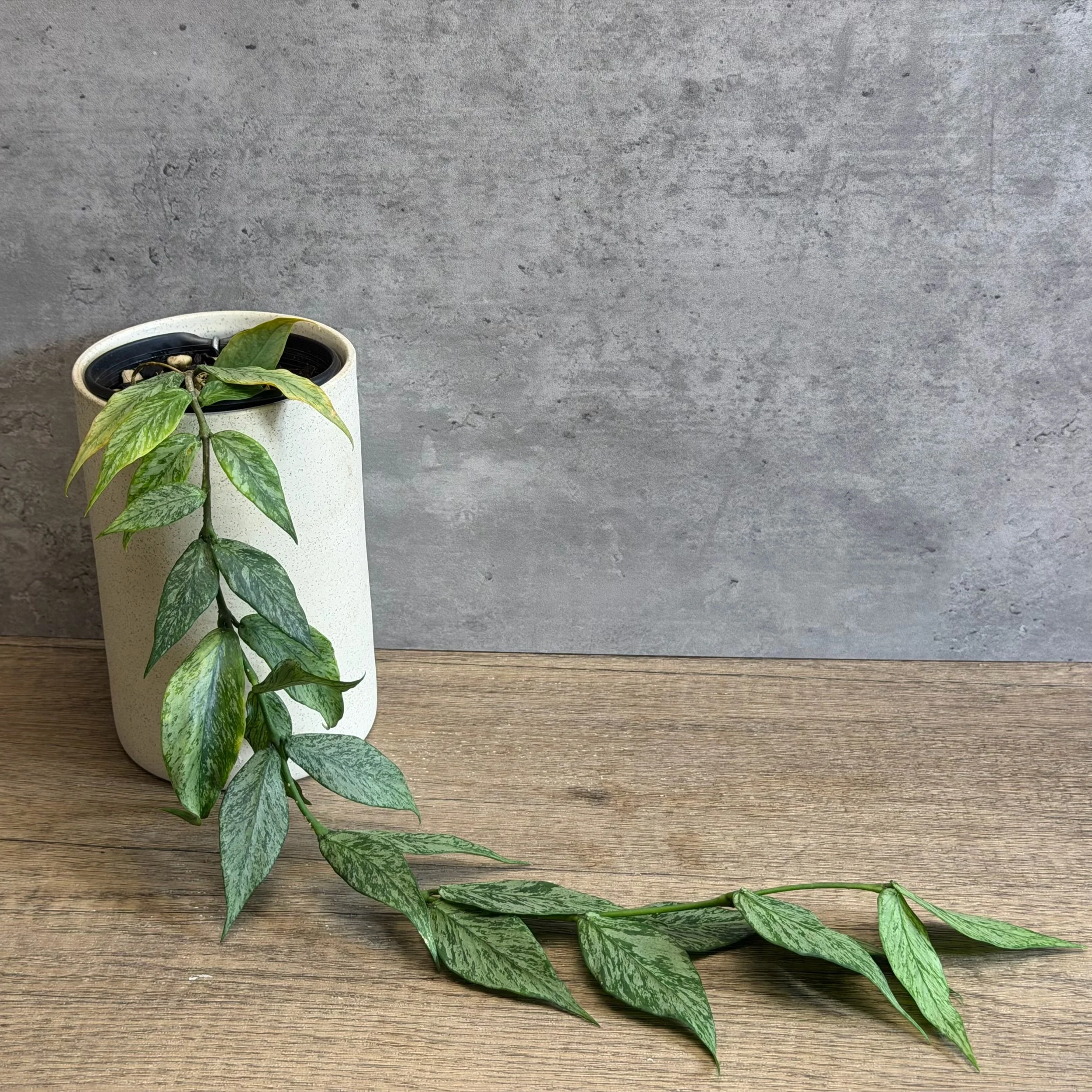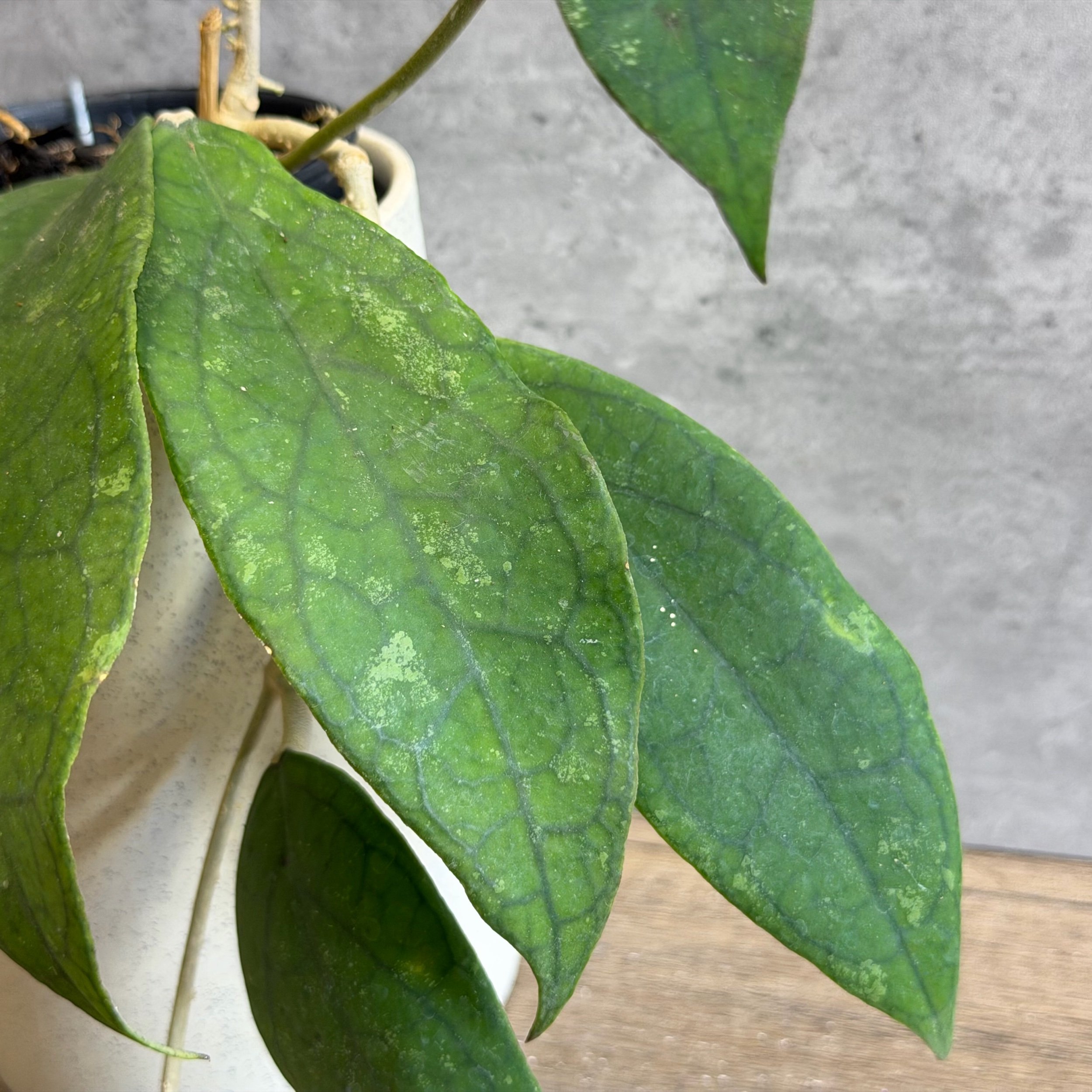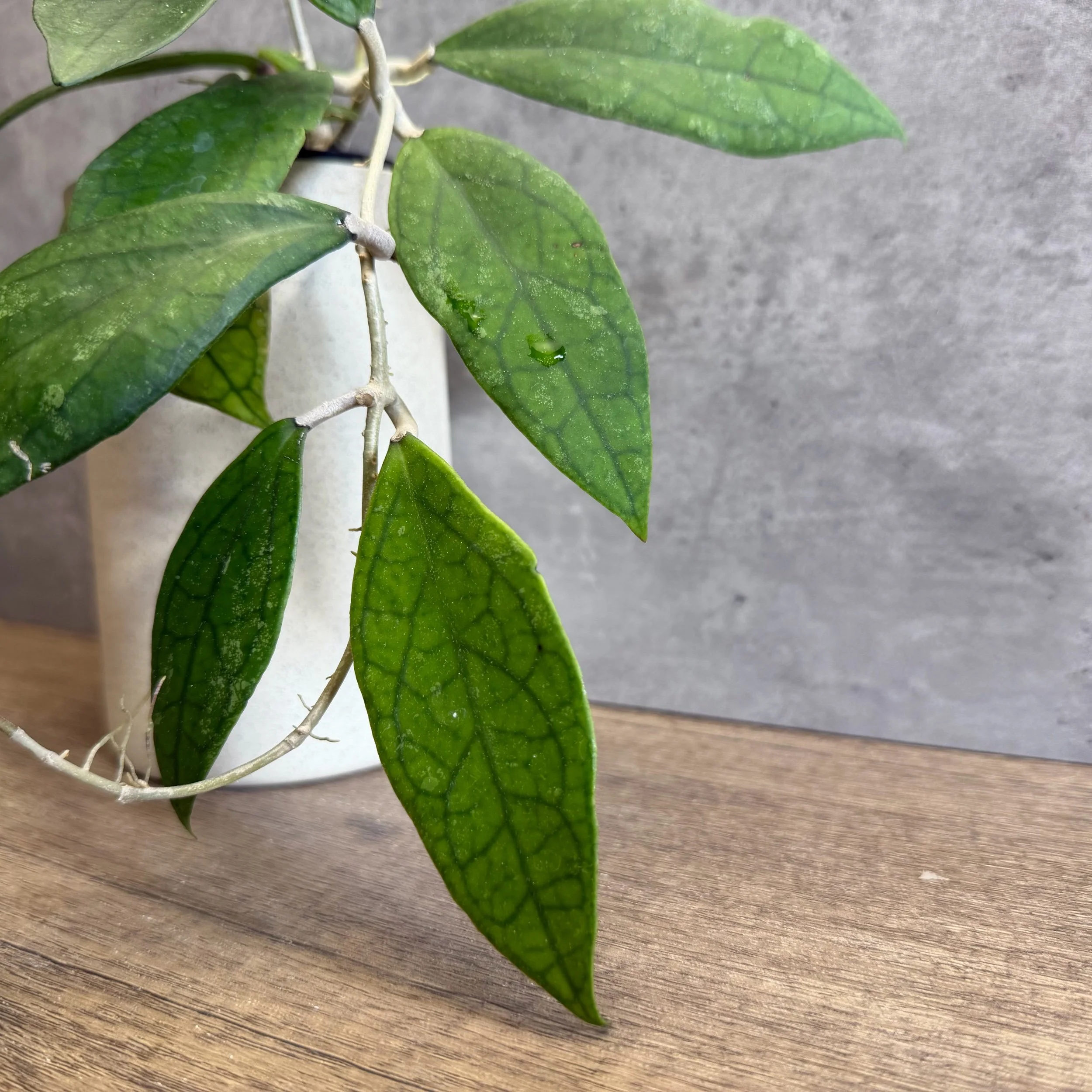 Yet another wonderful form of the famous fish tail Hoya! This variety is super easy to grow despite the heavy silvering. The silver form does not seem to be as tolerant to cold as the regular form. A must have for any collector!