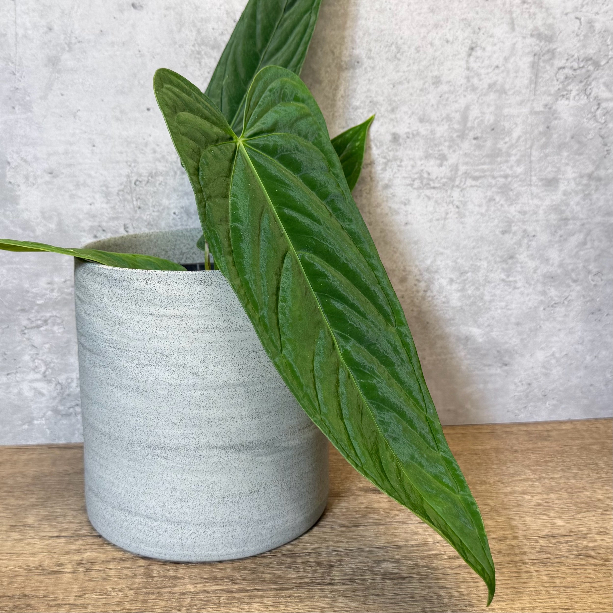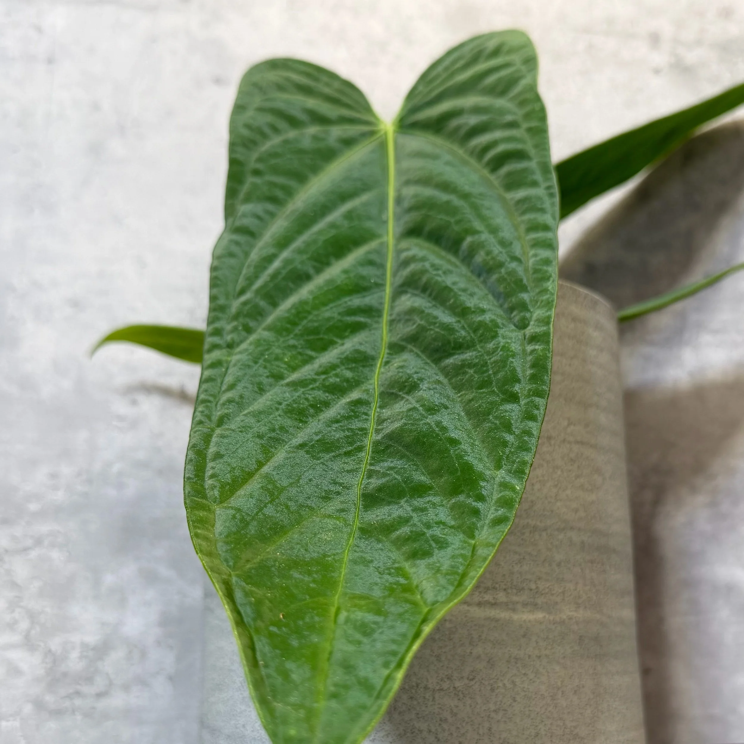Anthurium panamense × (papillilaminum × dressleri) is an exceptional blend of three iconic species, expressing outstanding hybrid vigour and beautifully balanced form. Shape, texture and the overall vibe = on point.