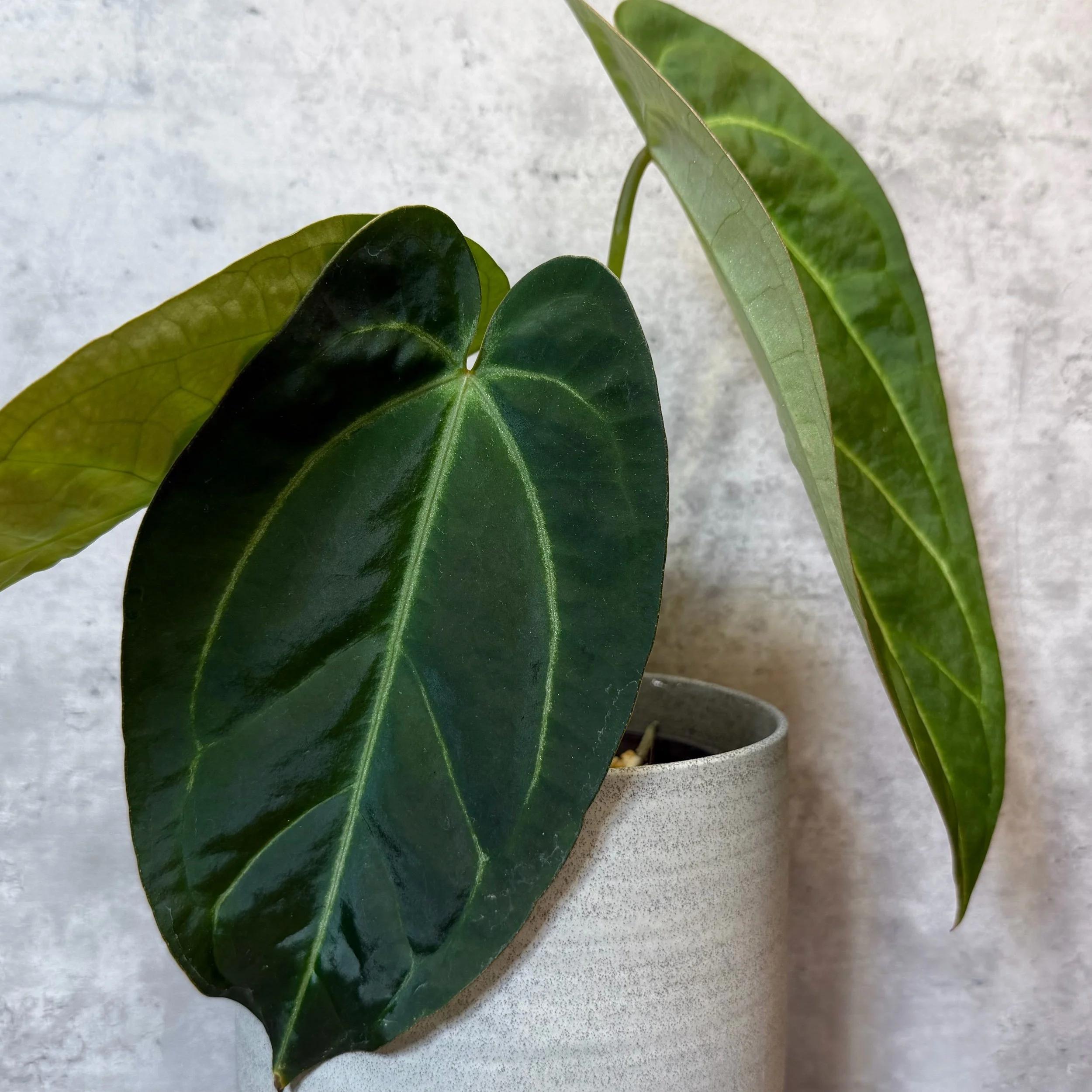 This is an absolutely exquisite specimen. Grown from seed originally from @AusPlantMum. It’s tag has been lost, however we are fairly sure this was from an Anthurium ‘Black Sensation’. Regardless, this is a beautiful plant with a lovely shape, texture and colour. This will be a marvellous plant when mature.